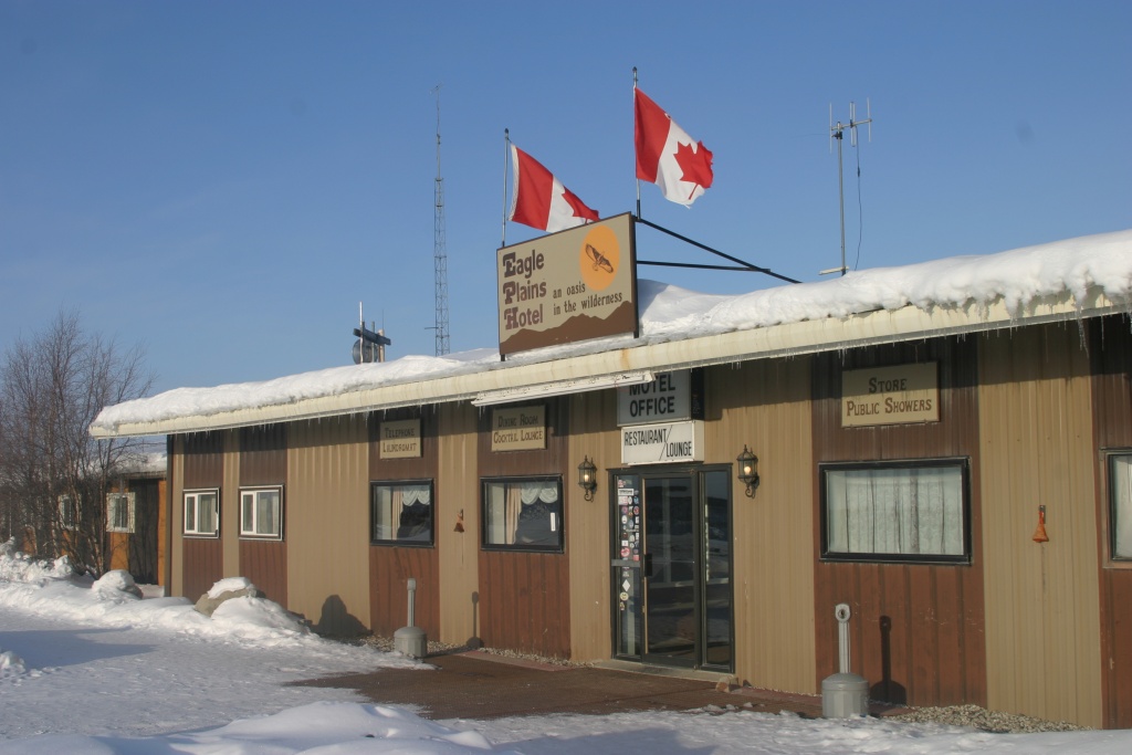 I forgot to mention yesterday, April 1, that is was 33 years ago that we left Camborne, ON for a few years in the West. Who would have thought that 33 years later we would be in Eagle Plains, YT? Julie notes “We celebrated in the hotel restaurant surrounded by an amazing display of stuffed wildlife including musk ox, moose and mountain goats and historical pictures telling the story of the Mad Trapper of Rat River. This might seem strange to some but I’ve been travelling with a mad old goat for years, 33 years in fact.”