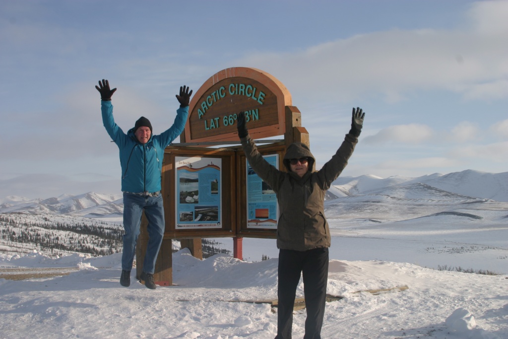 Time to set the clocks ahead an hour. Julie notes “Looks like we are trying to set our internal clocks in this picture but again we are just trying to keep warm. No Arctic Circle Mile High monkey business here either! Brrrr but Wow!”