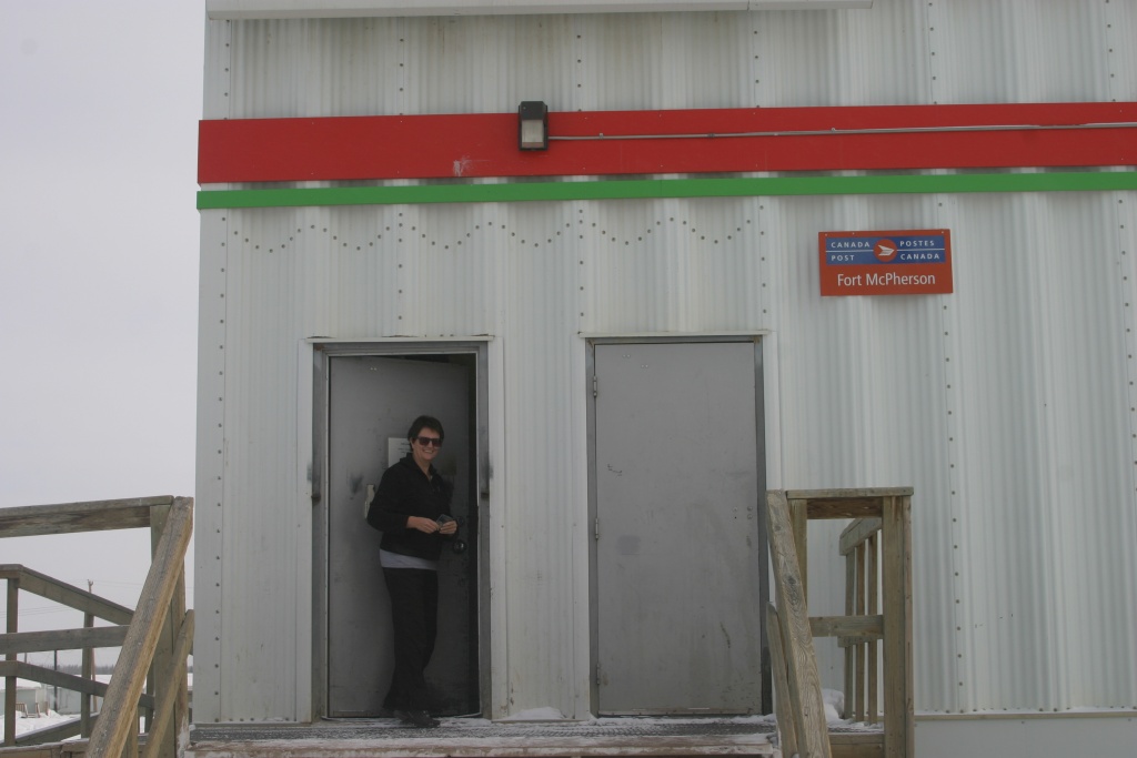 We stopped in Fort McPherson, an aboriginal community of about 900 people on the banks of the Peel River, long enough for Julie to mail a postcard to some family.