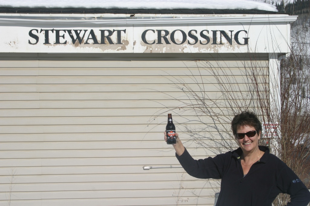 We made a stop at the convenience store in Stewart Crossing and Julie celebrated with a Stewart Root Beer. Julie notes “Just want to thank our good friend Denise and her forebearers for discovering this great river, building the bridge, starting this settlement and inventing this root beer. Denise says all the Stewarts are related so I figure she can pass on the gratitude.”