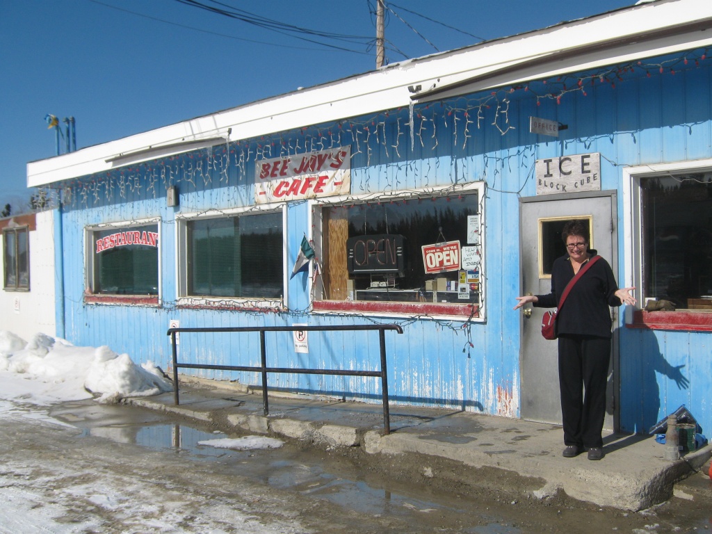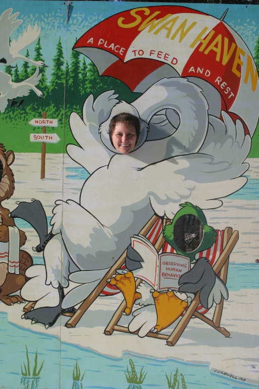 We made it to Watson Lake in time for a late lunch. We had already eaten at Kathy’s Kitchen on the way through on Day 2 and wanted to try some of the other fine cuisine Watson Lake had to offer. According to trip advisor, we should try BeeJay’s Cafe. The reviews said don’t be afraid of the outside. So we tried not to be. Actually pretty cute and clean in there. And we were hungry. The food was so-so. We wouldn’t recommend it but there are not that many choices in Watson Lake.