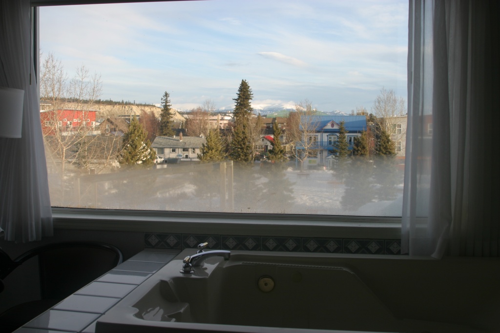We left our beautiful hotel in Whitehorse pretty early, for us. I had gotten a really good deal the day before at the nicest hotel in Whitehorse, the Coast High Country Inn. Our timing was perfect. When we arrived at the hotel we met the controller who happened to also be Renate from the Northern Lights Resort & Spa. I used my charms (not that I can help it – it comes naturally) and got a 30% discount and an upgrade to a Jacuzzi suite. WooHoo!