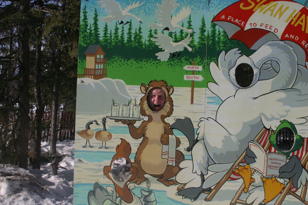 Our first stop for the day was Swan Haven on Marsh Lake, part of the Yukon River system, about 40 km from Whitehorse. This is a critical stopover for swans (trumpeter and tundra) on their long migration north to their summer nesting grounds. We were able to spot quite a few swans out on the open water however, they were a long ways from the shore and viewing area. Binoculars were required.