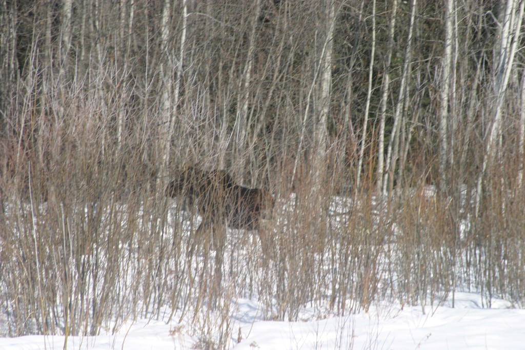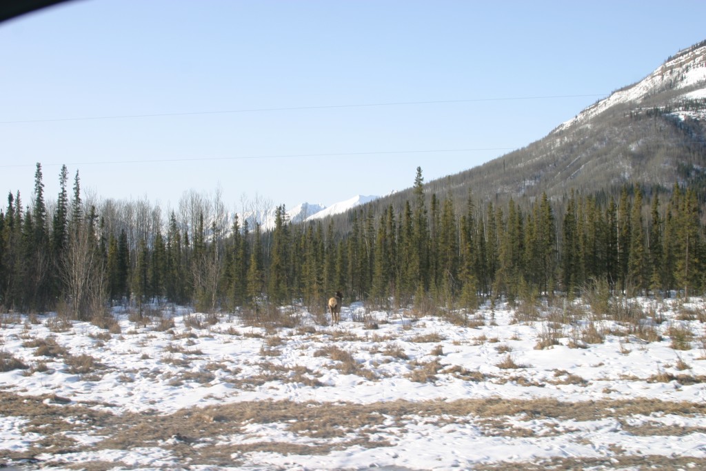 Today was another good wildlife sighting day. First we spotted two elk alongside the highway. They were moving into the bush so it was tough to get a good photo. They always seem to be mooning us. We’re starting to think it’s us?