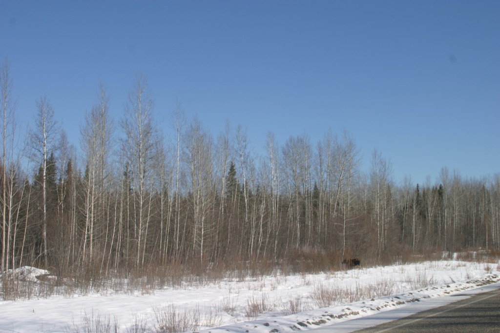 As we approached Fort Nelson, BC we spotted two moose along the highway munching on tender willow branches. They soon scooted into the bush as well.